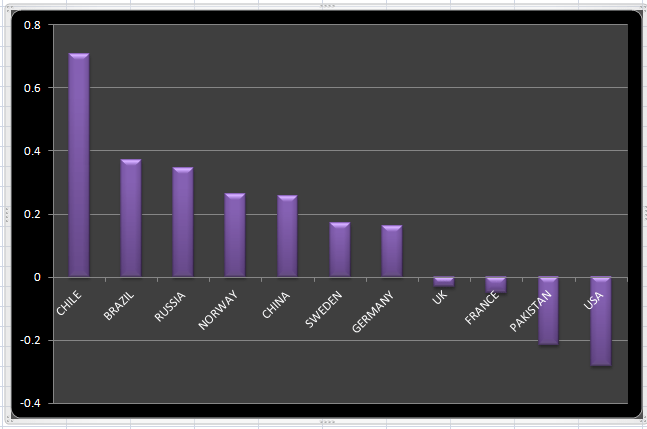 The Nordic nations are, as expected ‘happier’ than ever before, along with Chile, Brazil, Russia, China and Germany; but the UK, France, Pakistan and USA show marked decreases in perceived happiness…